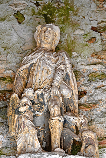 Emplacement de l’œuvre dans l’édifice : Extérieur de l’église, sous le porche
