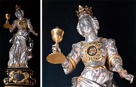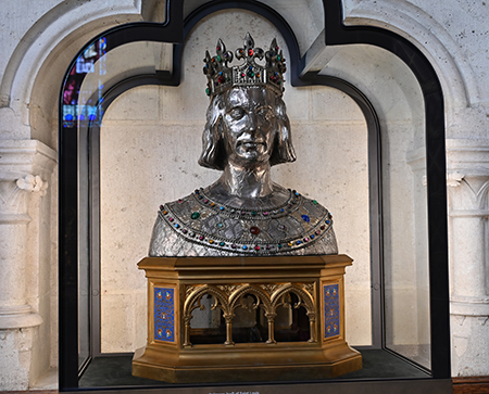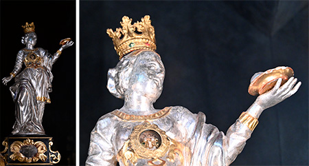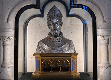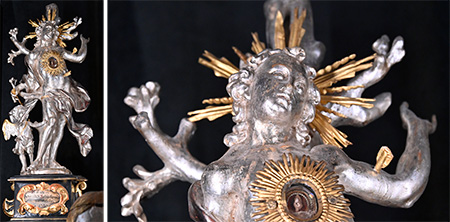 Le saint Roch de Notre-Dame de Paris au Trésor de la cathédrale Statuette-reliquaire : Saint Roch. Bois ; argenté, doré, XVIIe siècle