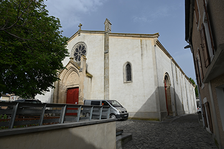 Sur le mur opposé se trouve une atypique dalle funéraire en marqueterie de marbre polychrome du XVIIIe siècle. En haut figurent les armoiries de la famille de Lordat, seigneurs de Bram. Le bas est occupé par deux personnages : un ange, jouxté de la mort. Ils tiennent un parchemin comportant une Inscription en latin mentionnant le décès de Paul-Jacques, Marquis de Lordat, le 16 juillet 1765. (In fiche signalétique de l’église)