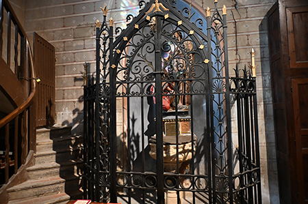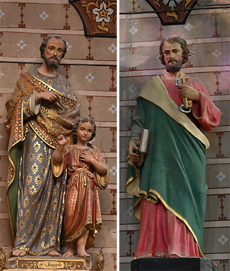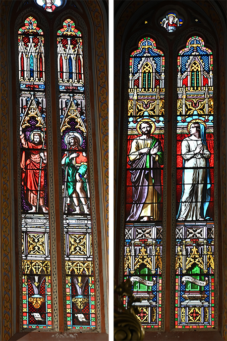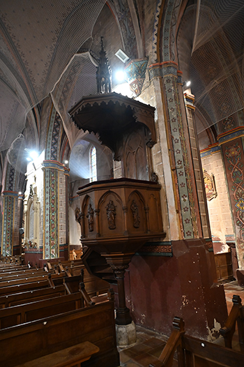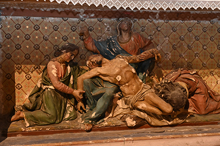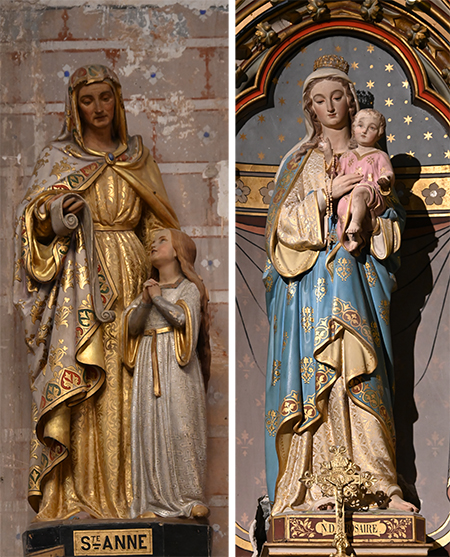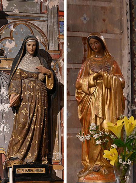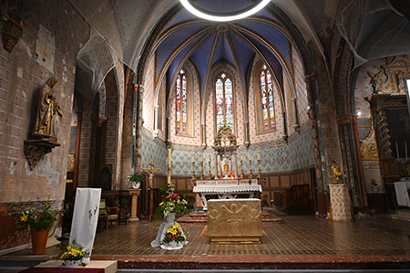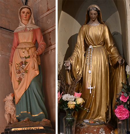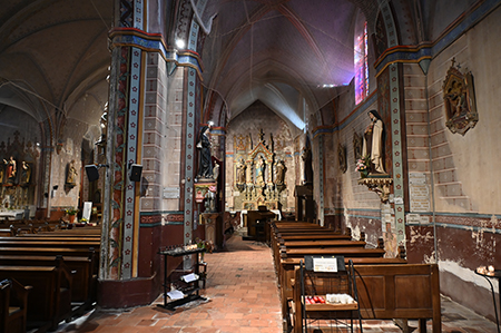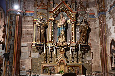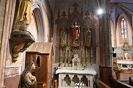Le chœur est flanqué de deux chapelles gothiques formant un faux transept. La chapelle de la vierge (chapelle sud) présente deux éléments remarquables, classés à l’Inventaire des Monuments Historiques :