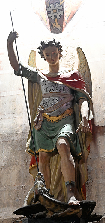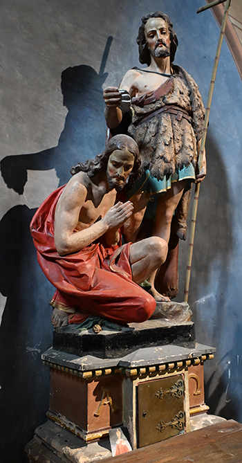 Le retable baroque du XVIIe siècle, en bois bichrome et marbre, surmonté de deux colonnes torses, s’orne en son centre d’un tableau de l’Assomption de la Vierge.