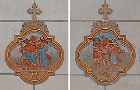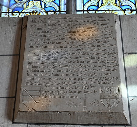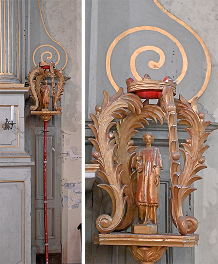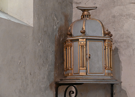 On pourra apercevoir sur le mur nord de l’église une bannière de 1861 qui accompagnait les Charitons de Saint-Roch lors des processions. (In fiche touristique de l’église)