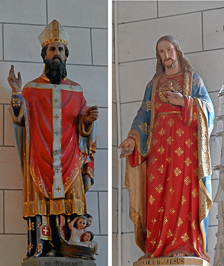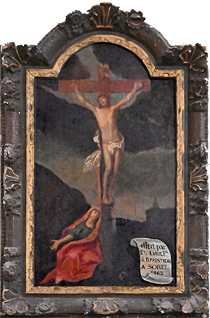 Les saints Roch de Sorel-MousselEn la chapelle du Moussel Statue découverte dans un souterrain du châteauSaint Roch en prière, tôle, XIXe siècleReprésentation moins classique du saint dans son rôle d’intercesseurStatue et son baldaquin en métal repoussé du XIXe siècleLe reliquaire visible (…)